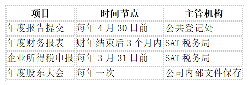 墨西哥公司年度合規(guī)義務(wù)