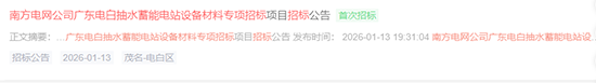 1月13日,南方電網(wǎng)公司廣東電白抽水蓄能電站設(shè)備材料專項(xiàng)招標(biāo)。標(biāo)的包括500kV油浸式三相雙繞組變壓器,500kV全封閉組合開關(guān)電器(GIS),500kV交聯(lián)聚乙烯絕緣電力電纜;需求單位為南網(wǎng)儲(chǔ)能公司。