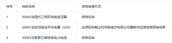 2.4資格審查方式:應(yīng)用投標(biāo)截止時(shí)間前南方電網(wǎng)公司最新供應(yīng)商資格預(yù)審結(jié)果/資格后審,具體見下表: